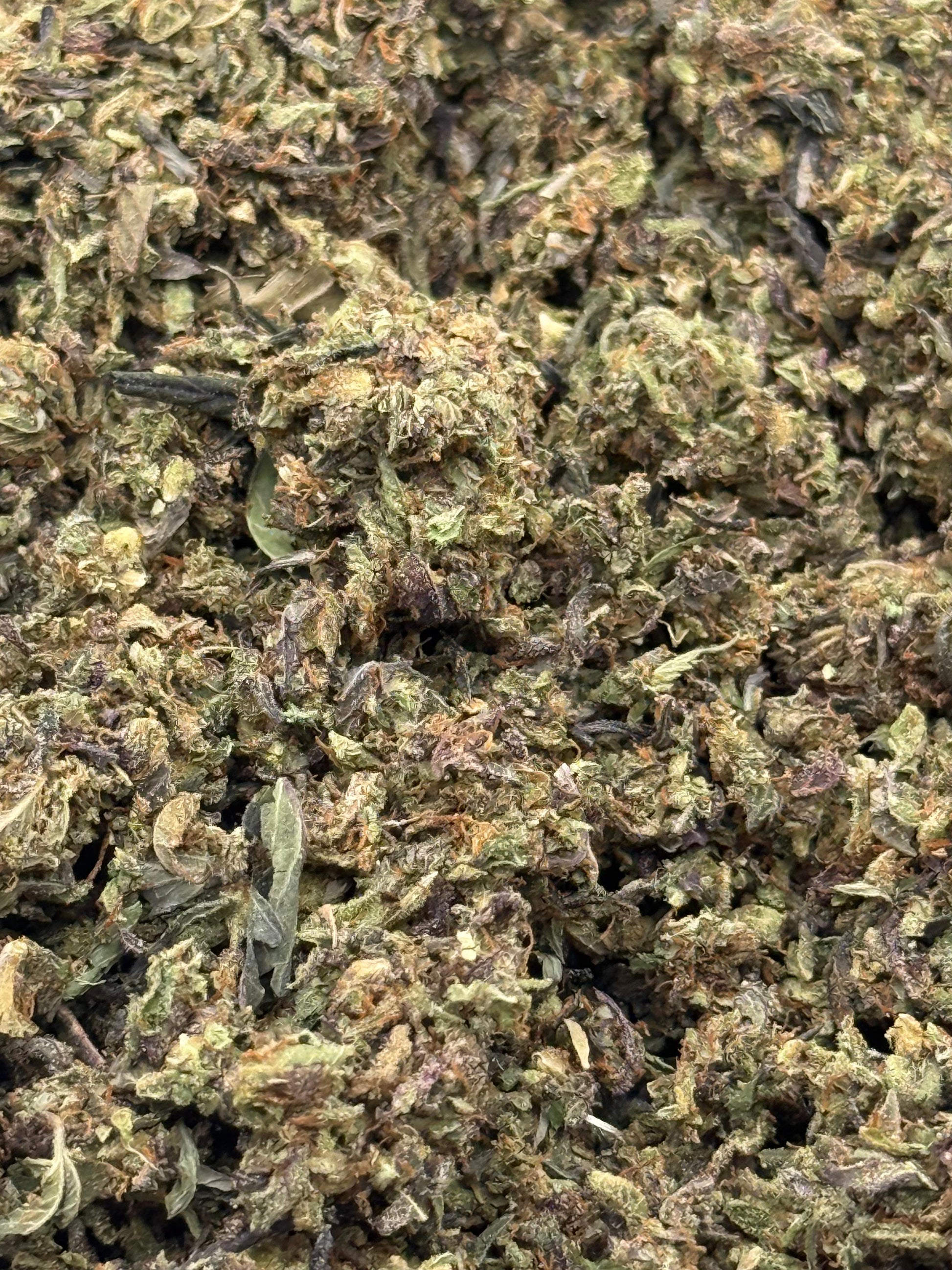 Appearance: The buds are elongated and slightly airy, showing bright green shades with soft golden highlights. Thin amber pistils weave through the structure, and a shimmering coat of trichomes gives the surface a glossy, resin-dusted finish.